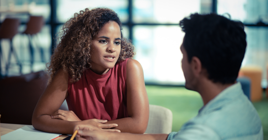 Keeps emotions in check. Asking “can we talk?” suggests cooperation, not combat.