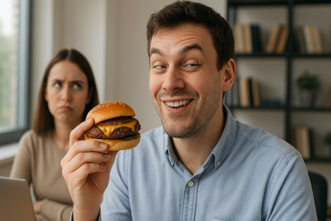 Here's what I said to Jake about his bacon sandwich: nothing. Here's what I've said to 99% of people about their food choices: nothing. Yet the preemptive defensiveness arrives anyway, swift and certain. The elaborate performances, the unprompted nutrition lectures, the "found the vegan" jokes when nobody was looking for one—it's shadowboxing with judgment that exists primarily in their own minds.