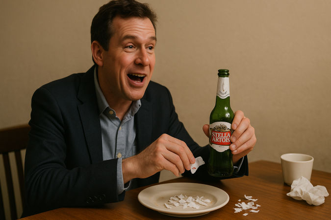 At any given party in America right now, someone is meticulously destroying a beer label. While their mouth says "totally fine, thanks for asking," their fingers are conducting a careful archaeology of adhesive, excavating a Stella Artois or a Topo Chico with the focus of someone defusing a bomb. By night's end, their spot at the table looks like a craft store explosion—tiny paper casualties of social survival.
