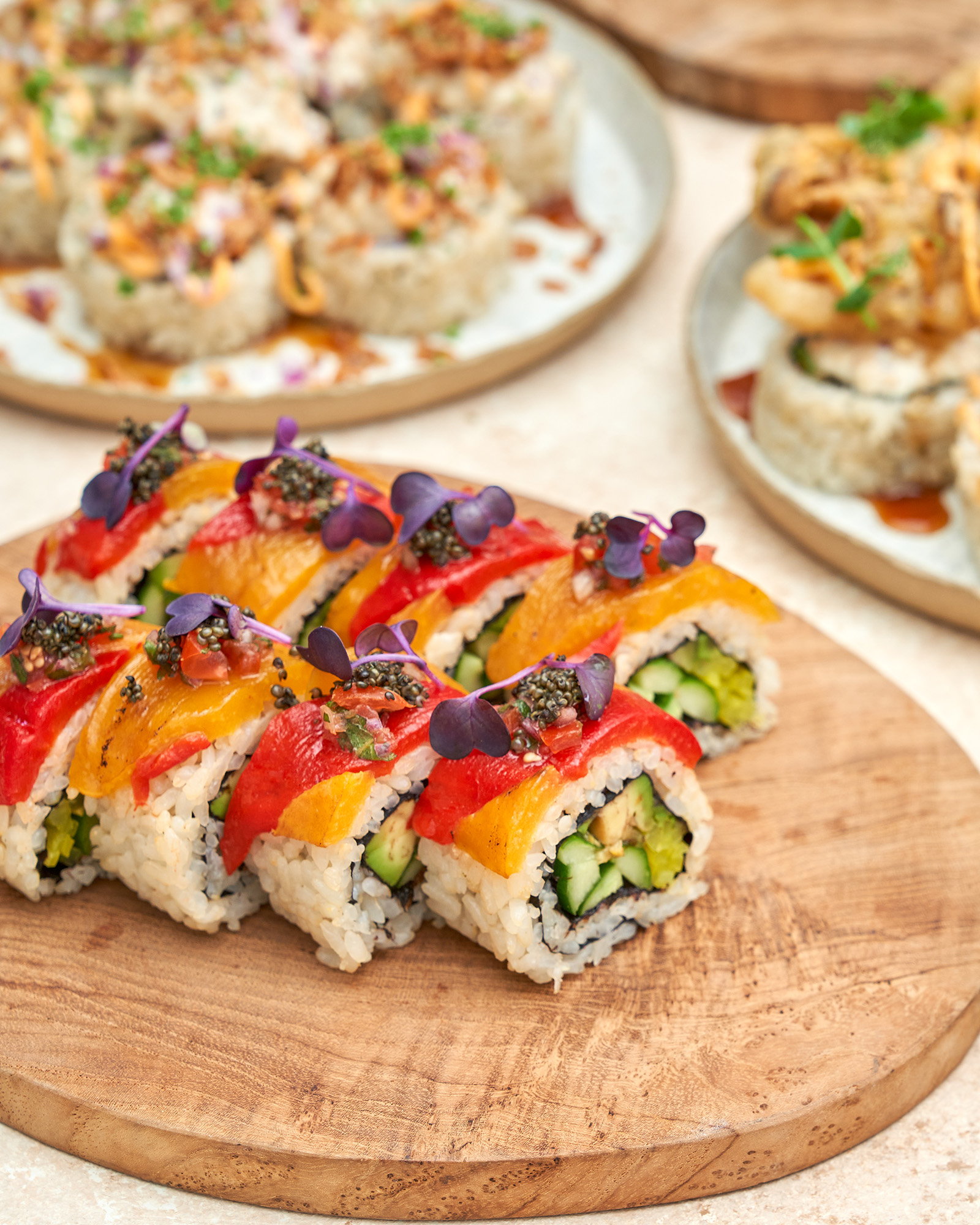 ippudo V’s extensive menu features plant-based appetizers, sushi rolls, and dessert options, with a focus on its vegan sushi. The restaurant will incorporate fermentation, smoking, and innovative adaptations of traditional Japanese techniques to elevate the flavors of some of its dishes. Highlights include Matilda with LEON, a marinated beet roll paired with cucumber, vegan mayo, and micro herbs, as well as the Super Mario Bros with mushroom and asparagus tempura, marinated carrots and red cabbage, drizzled with teriyaki sauce.