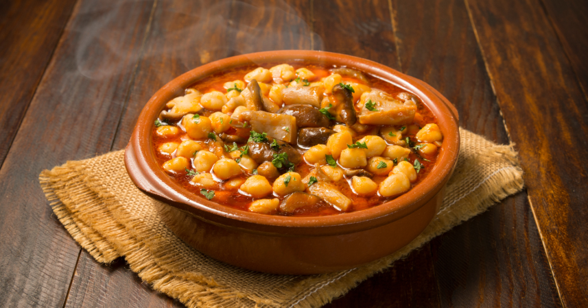 — Tuscan white bean stew. Bland broth, mushy beans.